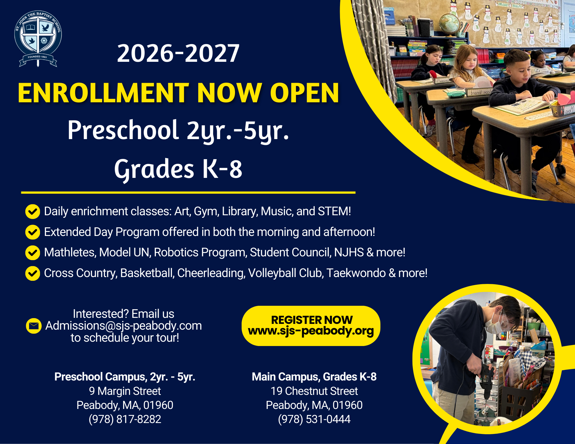 The Admissions office is open Monday-Friday, 7:30am-2:30pm